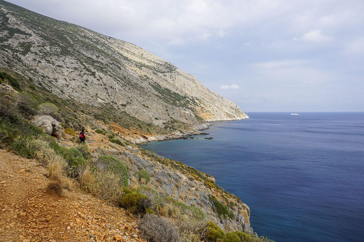 Η διαδρομή μας κινείται σε χωματόδρομο (το πρώτο τμήμα) και σε μονοπάτι δίπλα στη θάλασσα (το δεύτερο). Δεν υπάρχει βλάστηση ούτε πόσιμο νερό στη διαδρομή.