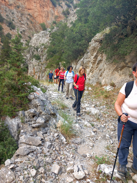 The route starts above the chapel of Agios Georgios, 3 km after Agios Ioannis, following the paved path.